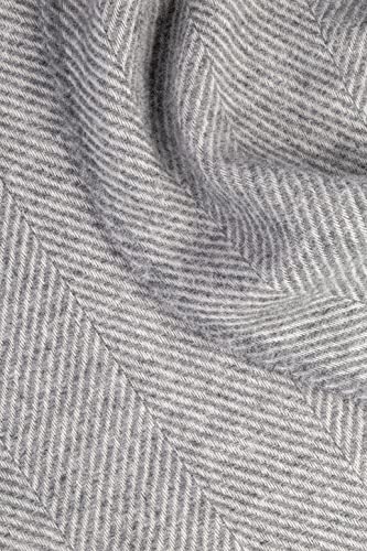 Long plaid en pure laine à chevrons crème-gris, 130x220cm av...