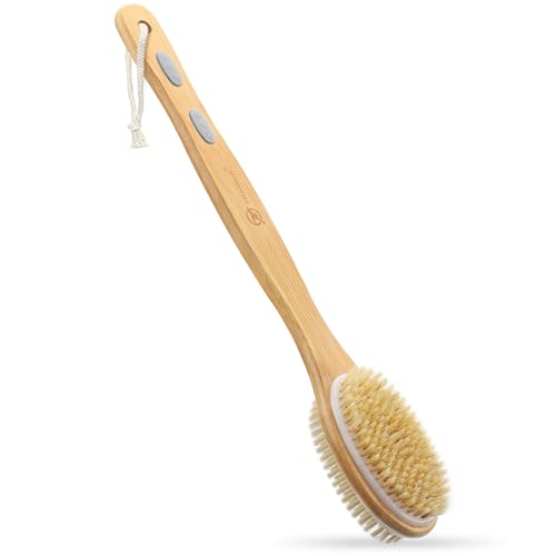 FREATECH Brosse Dos Douche à Long Manche en Bambou, Brosse d...