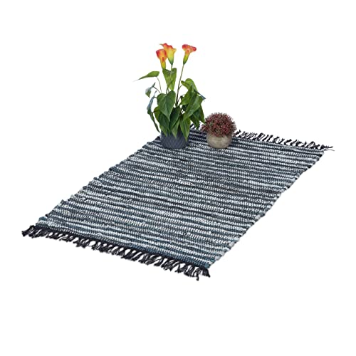 Relaxdays Tapis à Franges, 60x100 cm, Coton et Cuir, tissé M...