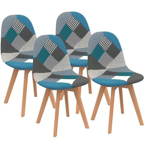 IDMarket - Lot 4 chaises scandinaves SARA patchwork bleu