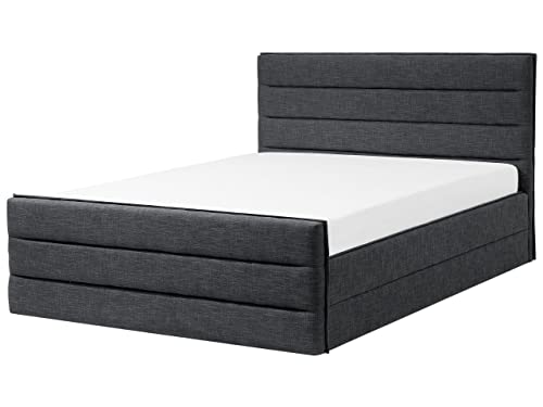 Lit double tissu gris foncé 180x200 cm tête de lit rembourré...
