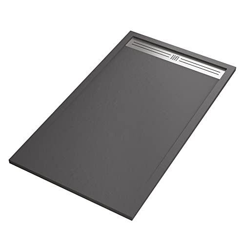 Réception de douche marbre effet pierre ciment gris foncé Re...