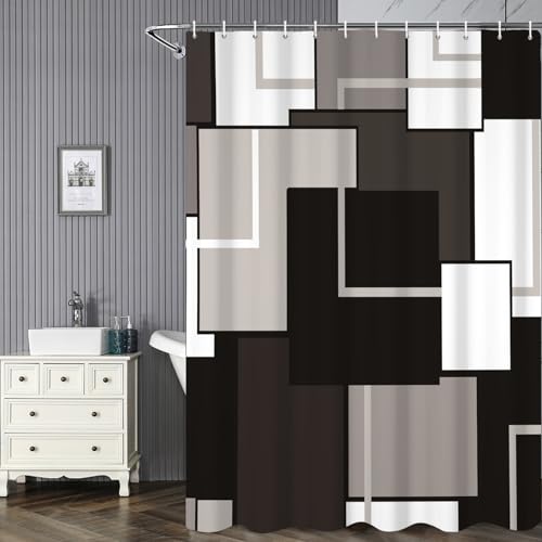 Titre nettoyé : Noir géométrique Rideau de Douche 183x188cm...