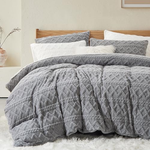 Sedefen Gris Housse de Couette 240x260 cm Polaire Sherpa Cha...