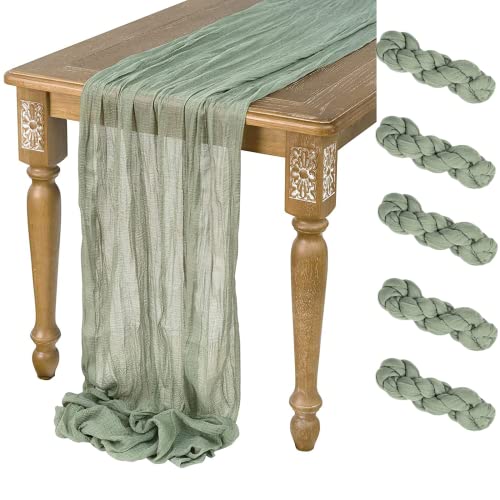 UIYIHIF Lot de 5 chemins de table en étamine Vert sauge 90x4...