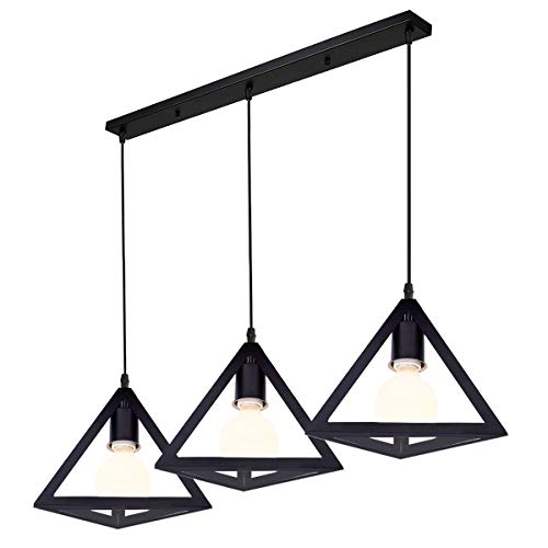 Lustre Industriel Art Géométrique Noir Triangle 50cm