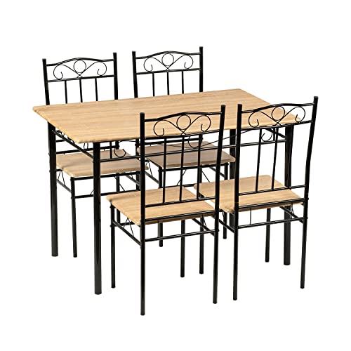 IPOTUS Table et Chaises, Bois de Hêtre, Pieds Métal Noir