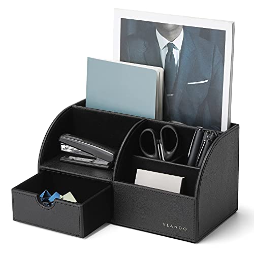 Organisateur de bureau multifonctionnel en cuir noir, 7 comp...