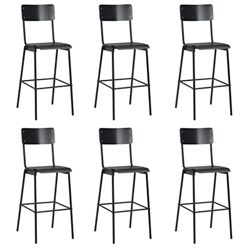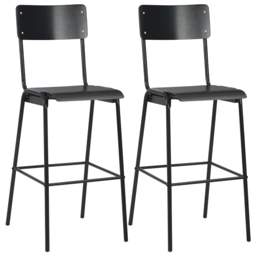 Chaises de Bar Noir Contreplaqué Solide Acier Lot 2