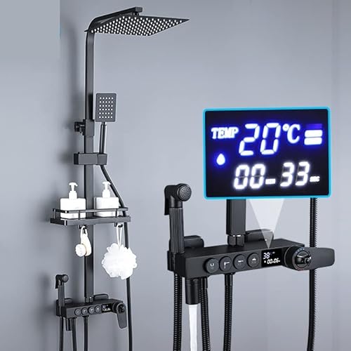 Ensemble de robinet thermostatique en chrome noir, effet plu...