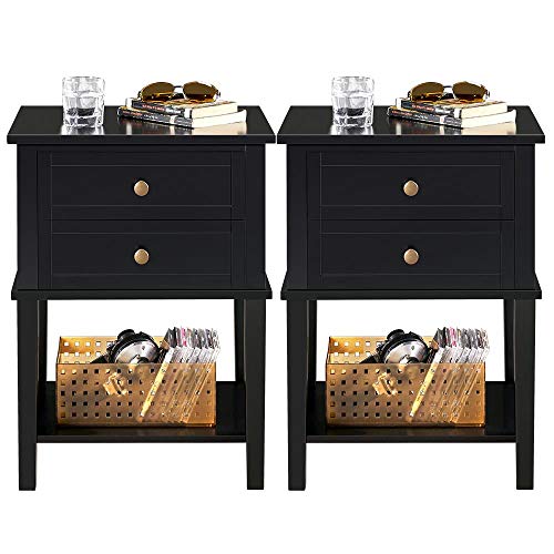 Lot de Tables de Chevet en Bois Noir avec Tiroirs et Étagère