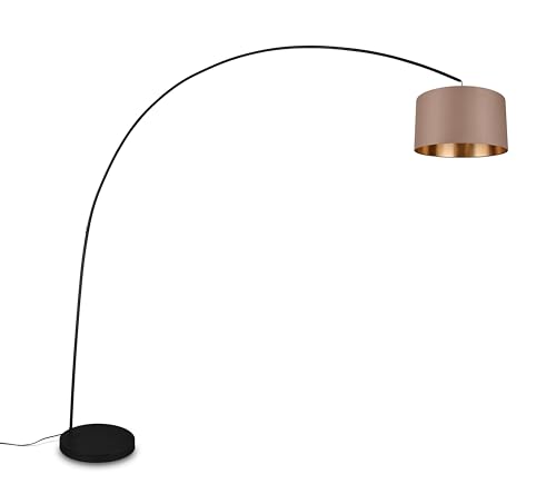 Lampe à arc Mansur en métal noir mat avec abat-jour en tissu...