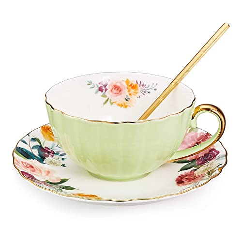 Jiotouhu Tasse thé élégante avec cuillère et soucoupe vintag...