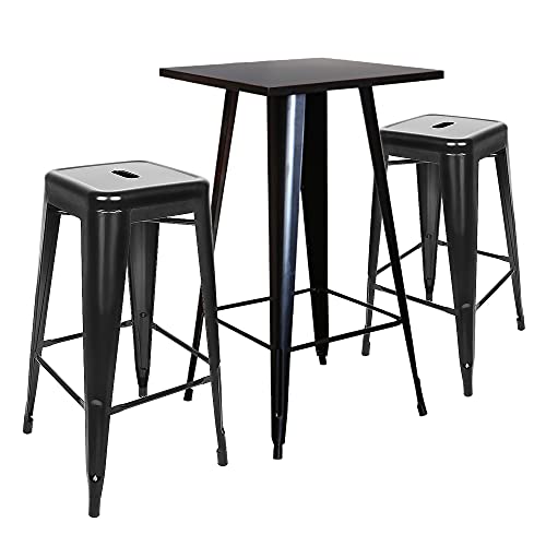 Table de bar bois métal haute carrée 60x60x110cm, Table haut...