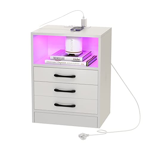 Pipoxer Table de Chevet 3 tiroirs, 45x35x60cm, 16 lumières L...