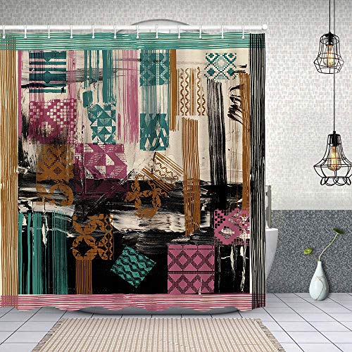 Rideau de Douche Tissu Polyester,Motif Grunge géométrique Et...
