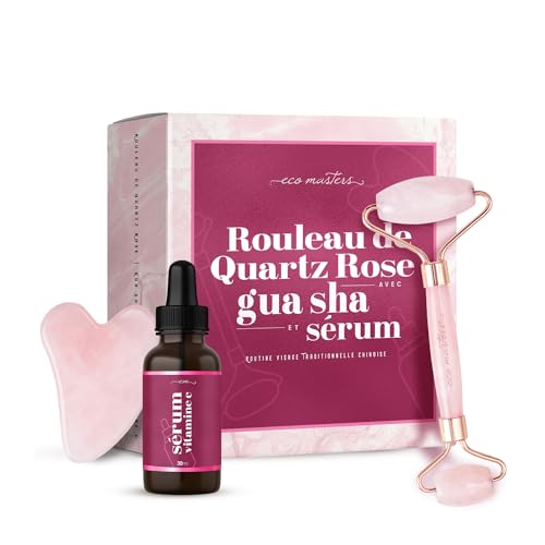Rouleau Quartz Rose, Pierre Gua Sha, Sérum Vitamine C 30ml F...