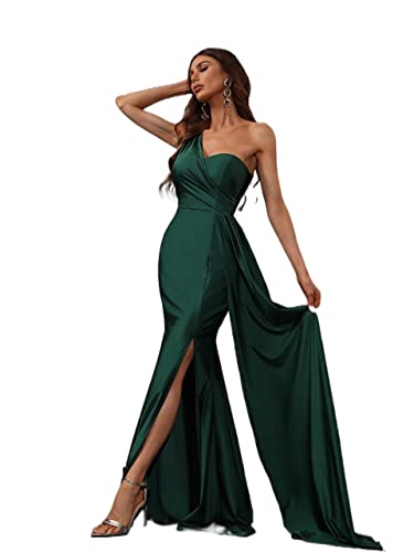 Robes Femme Asymétriques Fendu Satin Dark Green M