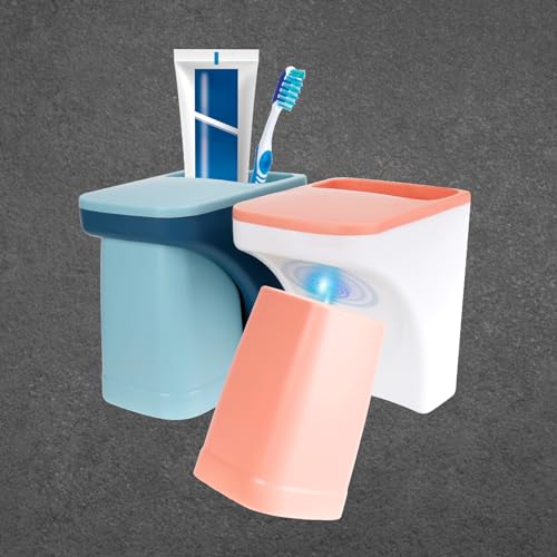 Porte-brosse à dents avec gobelet magnétique, bleu et rose