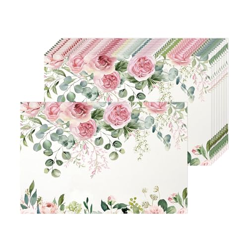Tarklanda 50 Sets de Table Papier Fleurs Roses Eucalyptus 40...