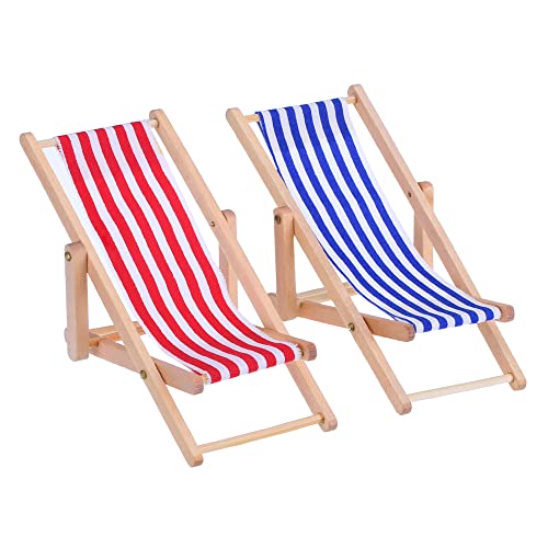 Bememo Chaise de plage pliante miniature en bois à rayures r...