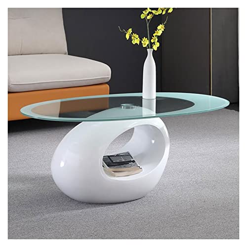 Table basse verre 33 pouces, Table de salon ovale avec étagè...