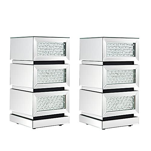 Panana 2 Tables de Chevets Miroir Cristal Verre Rangement 3...