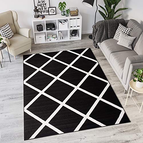 Tapis de salon et chambre design moderne blanc noir géométri...