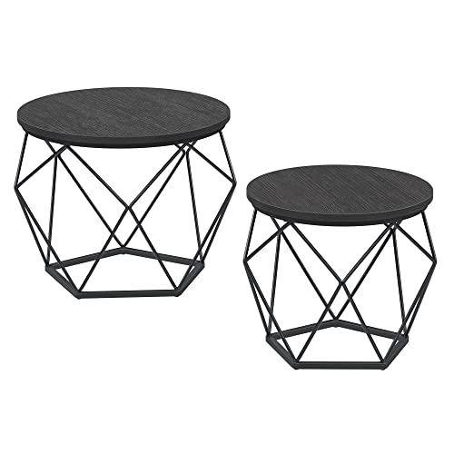 VASAGLE Table Basse Ronde, Lot de 2, Table d’Appoint, Bout d...