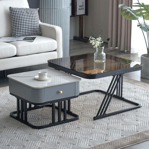 KOMH Lot de 2 tables basses en gris et noir, table d'appoint...
