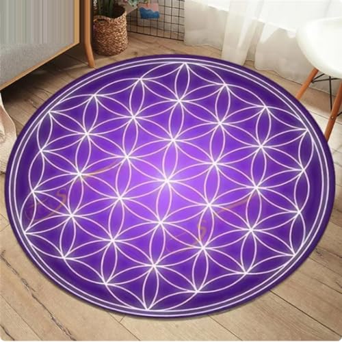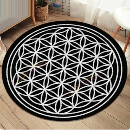 REIWAN Tapis Rond Fleur De Vie, Salon Chambre Canapé Tapis D...