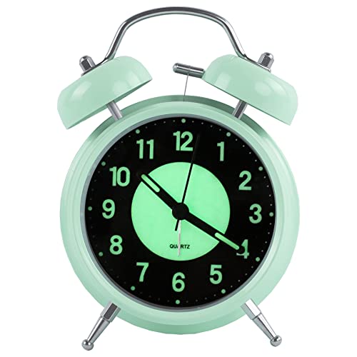 Réveil lumineux de 4 pouces, double cloche analogique rétro...