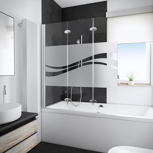 Pare-baignoire chromé 125 x 140 cm, 3 volets réversibles, éc...