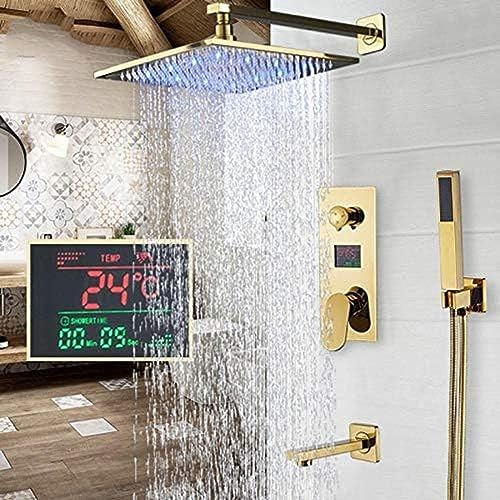Robinet mitigeur de salle de bain doré, pommeau LED, bec de...