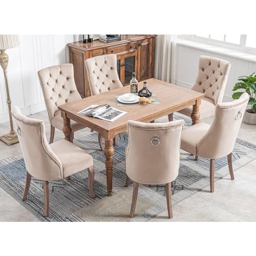 Lot de 6 chaises de salle à manger en velours, haut dossier,...