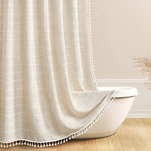 Awellife Rideau de douche texturé lin beige 183x213cm