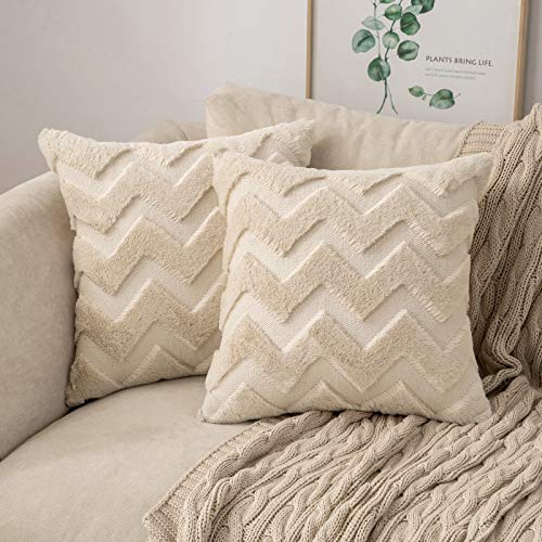 MIULEE Lot de Coussins Artificiels Ondés 40x40cm Beige
