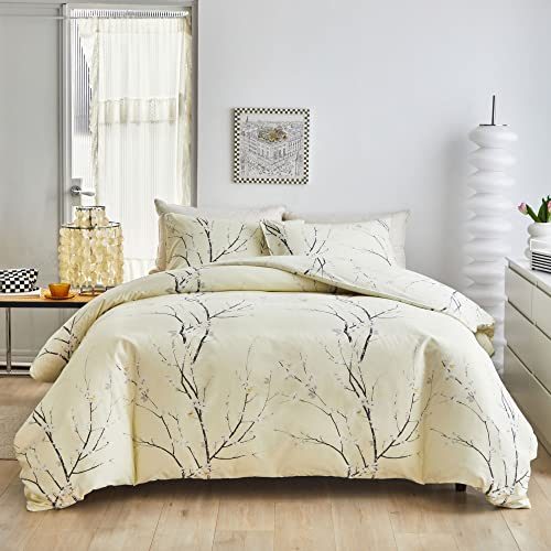 OLDBIAO Parure de lit floral moderne beige 135x200cm
