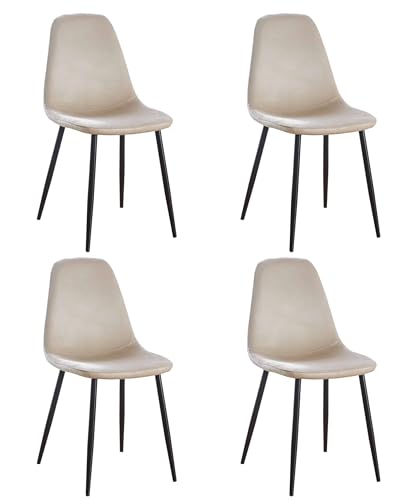 Lot de 4 Chaises Scandinaves Velours et Métal Beige