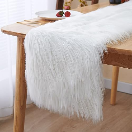【Dimensions】chemin de table fourrure 30 x 150 cm,blanc