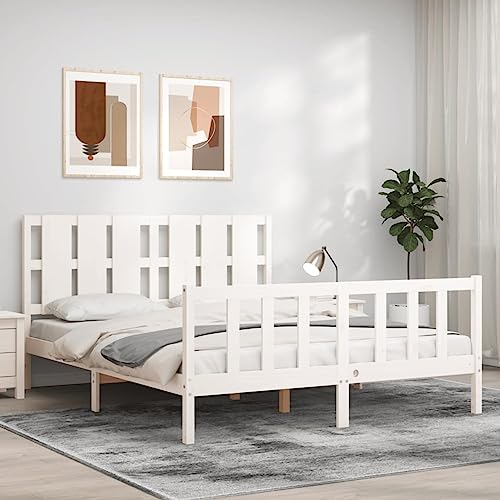 Cadre de lit King Size Bois massif Tête de lit Blanc