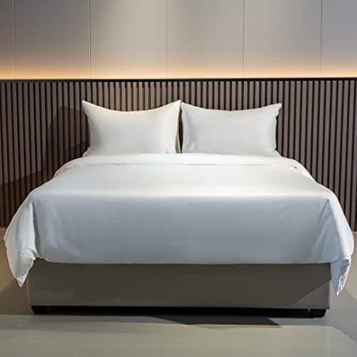 Parure de lit unie LINO blanc composée d''une housse de coue...