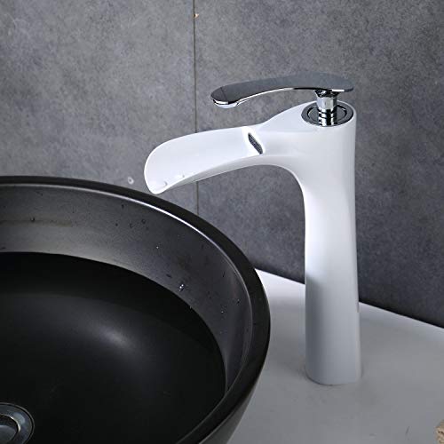 Robinet Lavabo Salle de Bain Mitigeur Haut Blanc Chromé