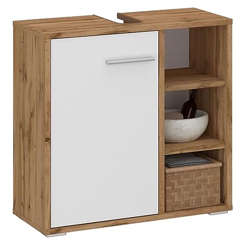 IDexe Meuble Rangement Salle de Bain NISTOS Chêne Blanc