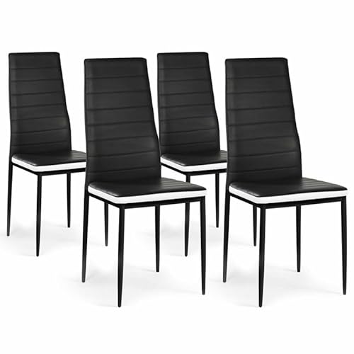 IDMarket - Lot de 4 chaises Romane Noires Bandeau Blanc