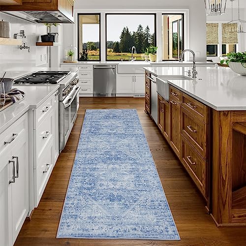 ZJXSNEH Tapis de Couloir Antidérapant Lavable et Doux Bleu