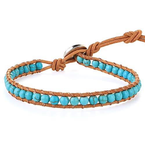 Kelitch Tour de Perle Naturel Rang Cristal Femmes Bleu 20B