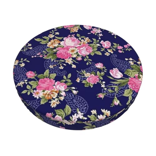 CPEOWZL Housse de tabouret à motif floral bleu marine protec...
