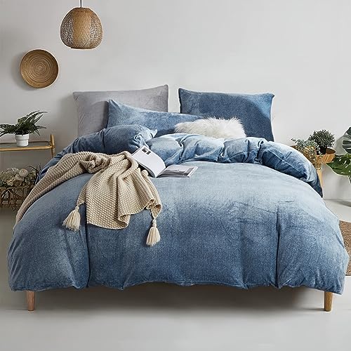 Parure de lit en peluche d'hiver Bleu chaud 135 x 200 cm