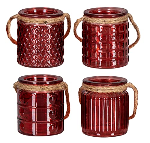 Lot de 4 photophores Bordeaux H10 cm décoration rétro verre
